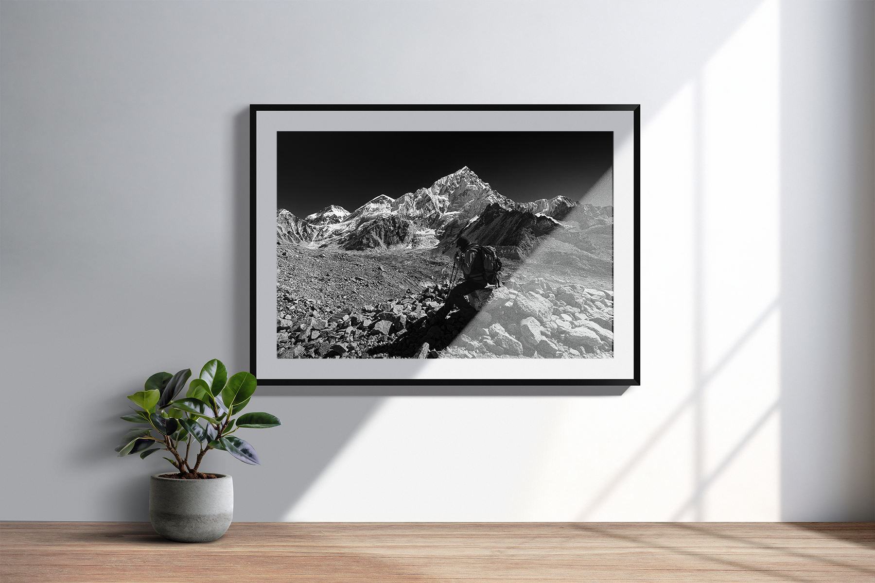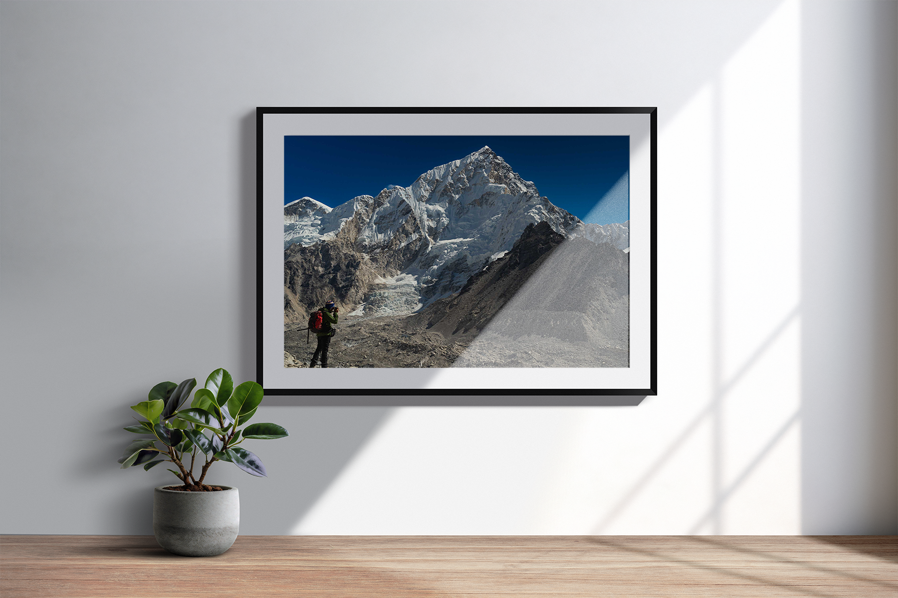 A captivating view- Nuptse's Majesty beneath Everest's Embrace. 1 x high-res .PNG, 7360x4912 px, 300+ dpi, RGB. Nature's majesty awaits! Download the image to give yourself the flexibility to have it professionally printed or framed, tailored to suit your personal style.
